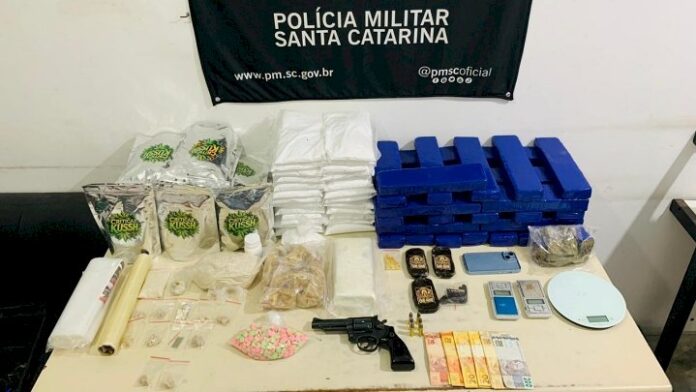 Na noite de domingo, 30, a Polícia Militar de Santa Catarina (PMSC) realizou uma operação que resultou na apreensão de drogas, arma, munições e diversos materiais utilizados no preparo e distribuição de entorpecentes, além da prisão de um homem de 24 anos. A ocorrência aconteceu no bairro Polícia Rodoviária, em Araranguá.