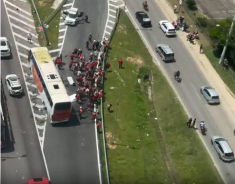 A Polícia Militar de Santa Catarina (PMSC) atendeu nesta manhã de quinta-feira, 4, na BR-101, altura de Itapema, ocorrência envolvendo torcidas do Santos, formada por sete ônibus, e do Internacional, formada por apenas um ônibus.