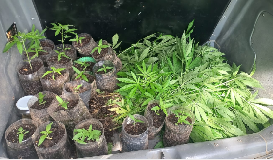 Após ter autorização da proprietária, a guarnição adentrou o local e constatou a referida denúncia, sendo encontrado nos fundos do terreno 62 pés de maconha, e ainda a mãe entregou 40 Grama (g), pronta para uso e disse que era só o que ele tinha.