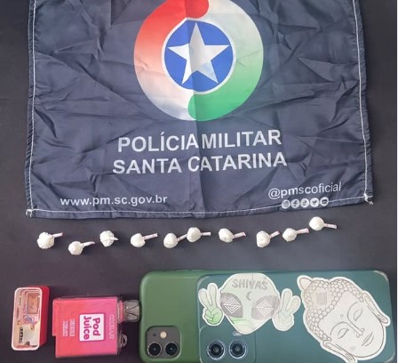 Segundo a PM, durante a revista, foi encontrada uma quantidade de 10 porções de cocaína escondida dentro de um cigarro eletrônico com o homem.