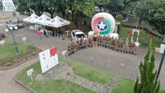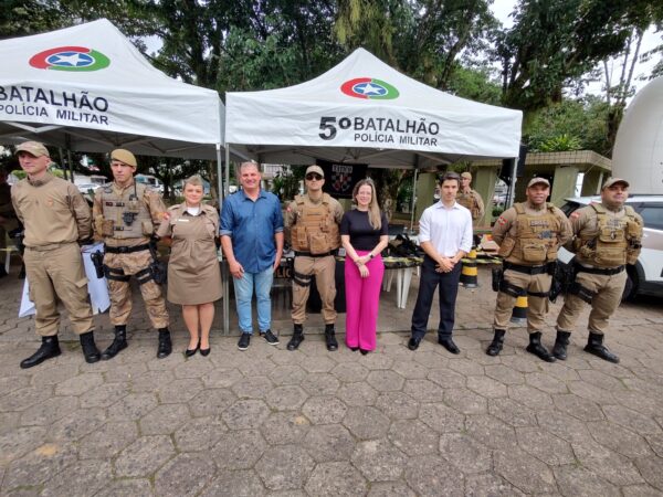 Segundo a PM, no local foram expostas viaturas policiais, equipamentos militares, bem como entregas de panfletos dos programas institucionais preventivos desenvolvidos pela corporação, como a Rede Catarina de Proteção à Mulher, Rede de Vizinhos, Rede de Segurança Escolar e sobre o aplicativo PMSC Cidadão, além da pista de trânsito disponibilizada pelo 5° BPM juntamente com o Sgt PM Maxsoel, além da presença do leão Daren do PROERD e do Canil que atraiu um grande público de crianças.
