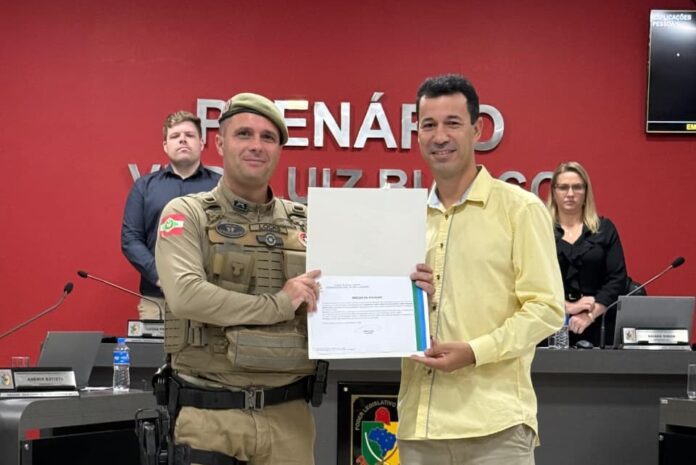 A Câmara de Vereadores de São Ludgero concedeu na noite desta segunda-feira (27), ao 3º Sargento Fernando Martins Locks, da Polícia Militar de Santa Catarina, Moção de Aplauso em reconhecimento aos relevantes serviços prestados à segurança pública no município. A homenagem foi entregue pelo Presidente da Câmara Municipal de São Ludgero, Marcos Souza.
