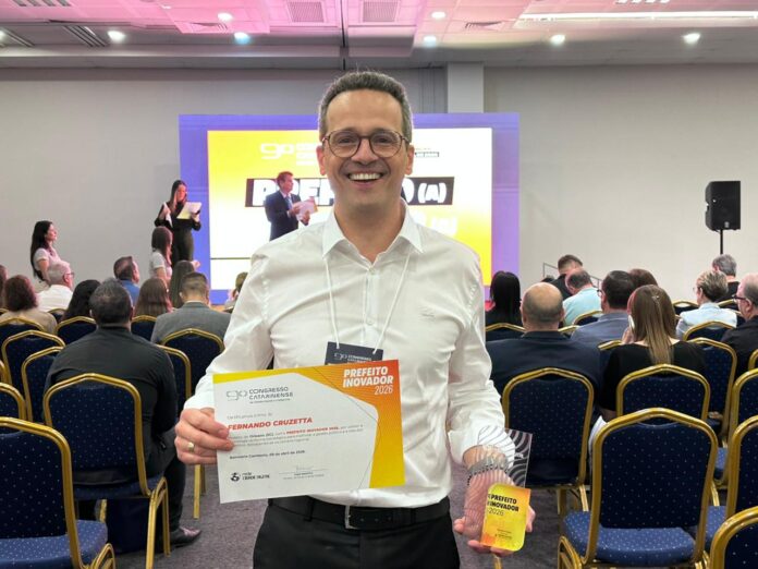 O prefeito de Orleans recebeu nesta quinta-feira, 9 de abril, o título de Prefeito Inovador 2026, concedido pela Rede Cidade Digital, durante o 9º Congresso Catarinense de Cidades Digitais e Inteligentes, realizado em Balneário Camboriú. A premiação reconhece a implantação do sistema Estaciona Orleans, voltado à modernização da mobilidade urbana e da gestão do estacionamento rotativo no município.