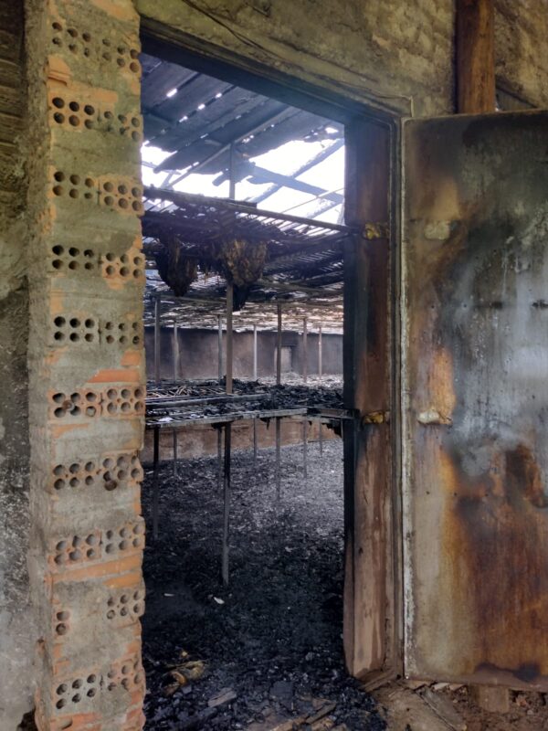 Proprietários combatem incêndio em estufa de fumo com água de poço no interior de Orleans