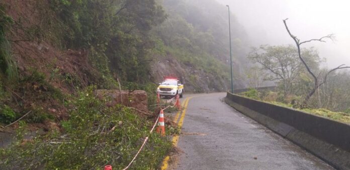 Queda de barreira deixa o trânsito em meia pista na Serra do Rio do Rastro