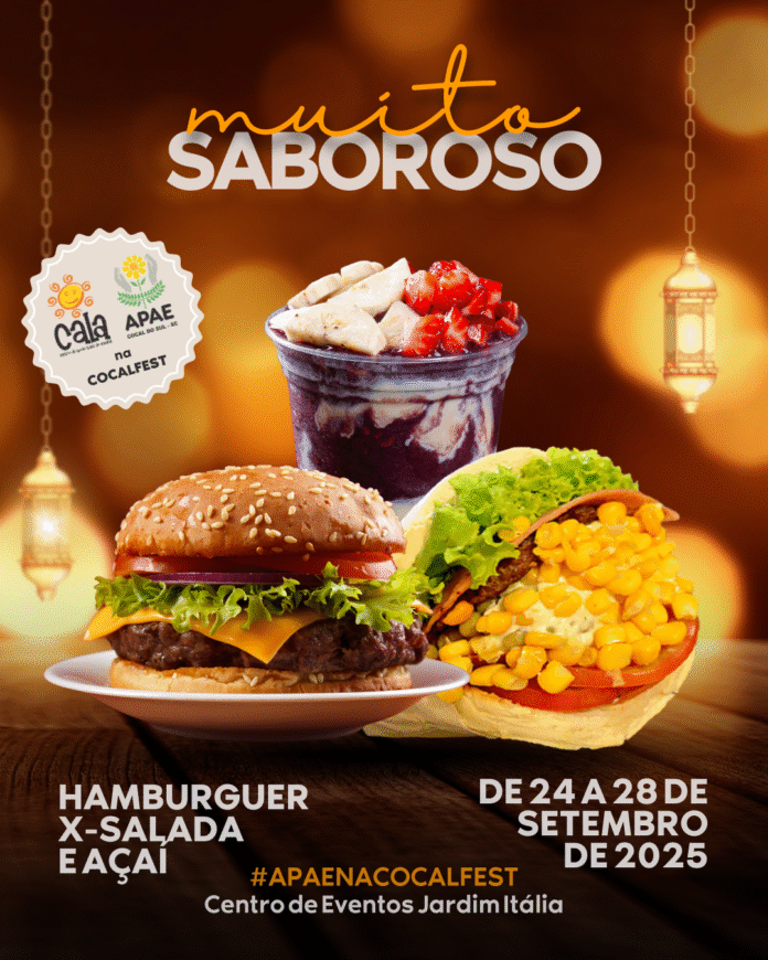 O presidente da APAE, Pedro Bertan, reforça o convite à comunidade. “Queremos convidar todos os sul-cocalenses e visitantes para passarem no box da APAE durante a Cocalfest. Nossos lanches já são uma tradição na festa, preparados com muito carinho. Ao saborear um hambúrguer, um X-salada ou um açaí, você também ajuda a nossa instituição a continuar desenvolvendo seu trabalho com as pessoas com deficiência. Esperamos vocês lá!”