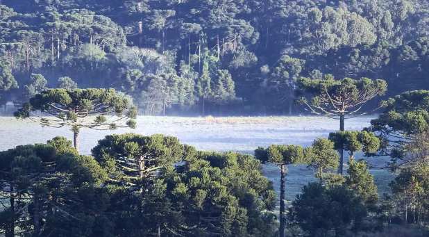 O amanhecer desta quinta feira 18 registrou geada em algumas cidades de Santa Catarina. Os campos amanheceram cobertos por uma fina camada de gelo em São Joaquim, no Vale do Caminhos da Neve.