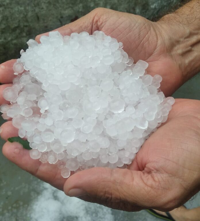 Um temporal com ventos fortes e queda de granizo atingiu Orleans no início da tarde desta sexta-feira, dia 02 de janeiro de 2026. Nas imagens registradas na localidade de Rio Belo é possível ver o acúmulo de granizo preso em sombrite, logo após o temporal. Segundo informações, há também registro de queda de granizo em Lauro Müller.