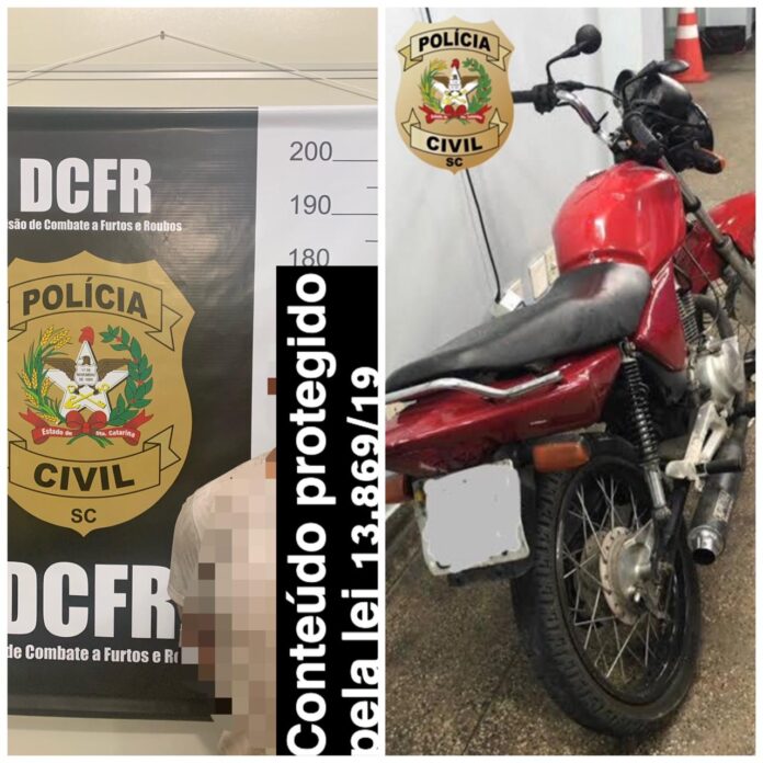 No dia 29 de janeiro deste ano, a motocicleta furtada foi recuperada na cidade de Armazém e, após os procedimentos de polícia judiciária, foi restituída à vítima pela autoridade policial daquela comarca. Registre-se que a motocicleta foi encontrada na casa da ex-companheira do suspeito, uma vez que ele havia ido ao local conduzindo-a e ao perceber a chegada da polícia fugiu do local e deixou-a para trás.