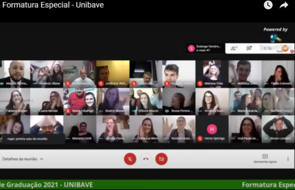 videoconferência em formato de gabinete especial marcou a formatura de profissionais dos cursos de Administração, Agronomia, Ciências Contábeis, Direito, Educação Física (Licenciatura), Engenharia Ambiental e Sanitária, Engenharia Civil, Engenharia de Produção, Farmácia, Medicina Veterinária, Pedagogia, Psicologia e Sistemas de Informação.