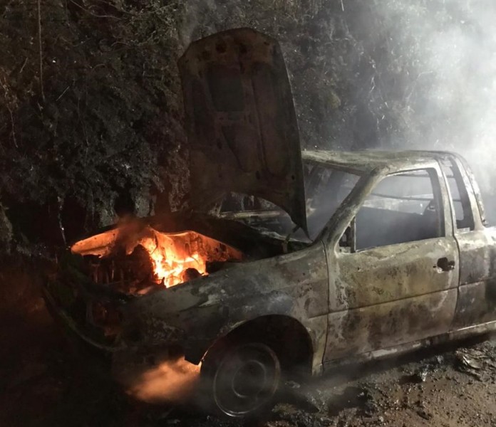 Uma picape VW Saveiro pegou fogo na noite desse sábado, dia 29, em Urussanga. O incidente aconteceu por volta das 22 horas, na estrada geral do bairro Belvedere, e quando os bombeiros chegaram no local o veículo já estava tomado pelo fogo.