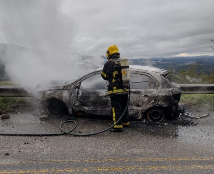 Um veículo VW Gol pegou fogo na Serra do Rio do Rastro, trecho da SC-390, que liga as cidades de Lauro Müller e Bom Jardim da Serra. A ocorrência foi registrada na tarde desta quarta-feira, dia 12, por volta das 14h41.