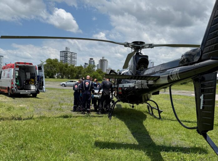 Um paciente de 83 anos acabou caindo de uma altura de aproximadamente 2 metros e teve um traumatismo crânio encefálico, com perda de consciência no local, associado a sangramento ativo, em Jaguaruna, no bairro Camacho. A ocorrência foi registrada pelo Saer neste sábado, dia 24 de janeiro de 2026, por volta das 11h40.